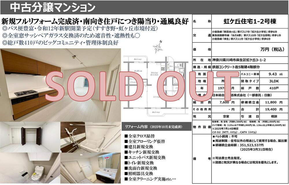 虹ケ丘住宅1-2号棟4階部分 おかげさまで成約致しました!