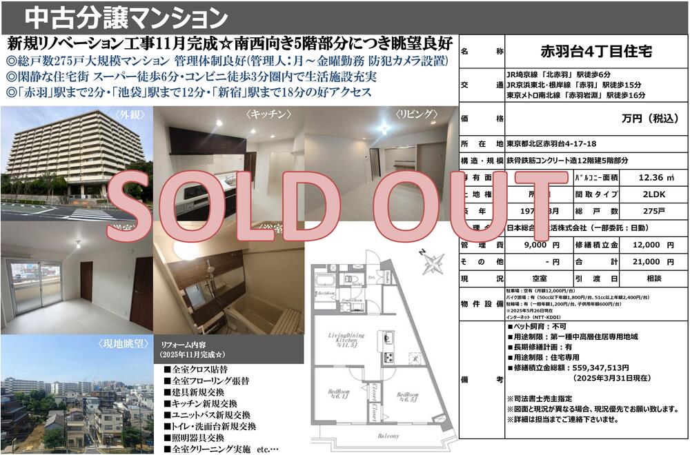 赤羽台4丁目住宅5階部分 おかげさまで成約致しました!